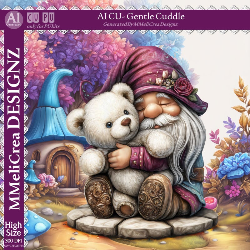 Gnome Hugging Teddy Bear 1 : 3258x4120 pixels - 300DPI