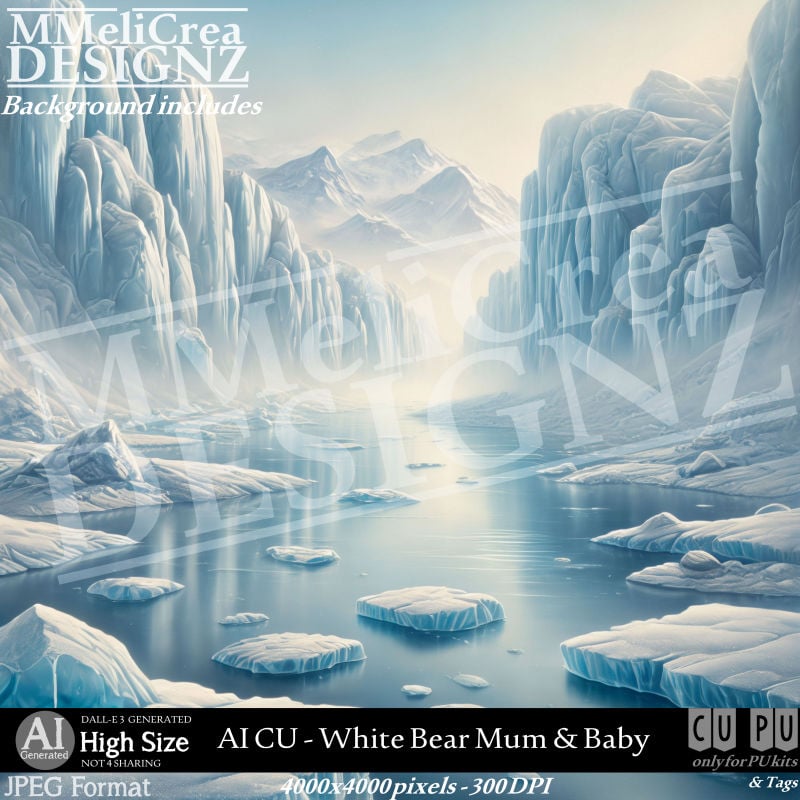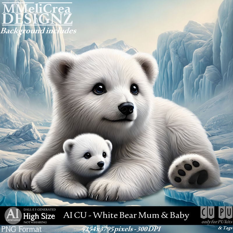 1 PNG White Bear Mum & her Baby : 5254x3795 pixels - 300DPI