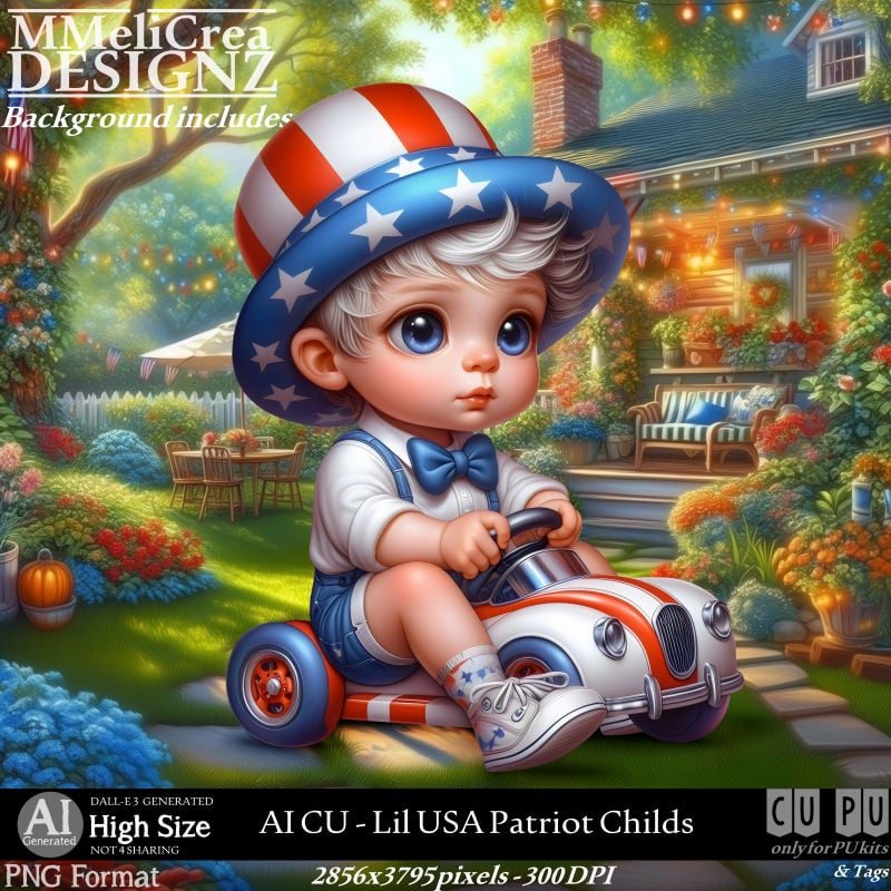 Patriotic Boy on a Toy Car : 2856x3795 pixels - 300DPI