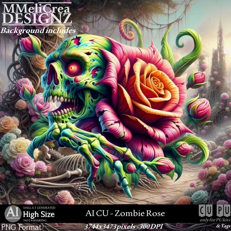Rose with Zombie Head : 3744x3473 pixels - 300DPI
