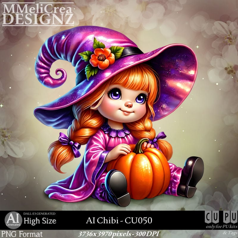 1 PNG Chibi Witch Girl : 3736x3970 pixels - 300DPI
