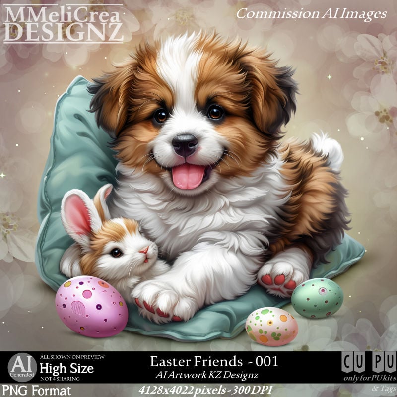 Easter Dog & Rabbit : 4128x4022 pixels - 300DPI
